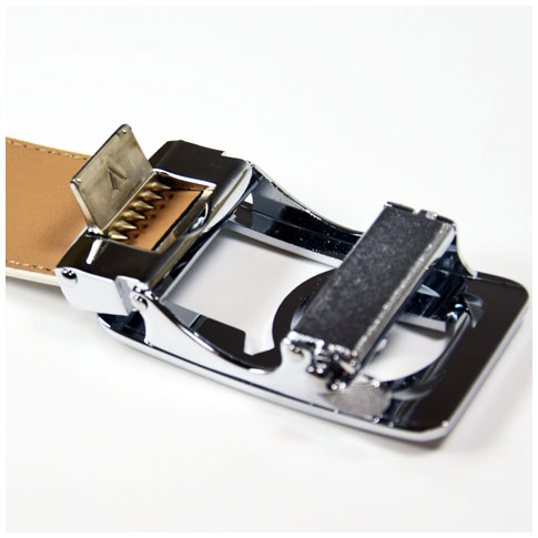 ● 材質:鋼質材料及皮革材料 ● 尺寸:皮帶頭 4.8X3.6 CM 皮帶 125公分 ● 重量:195g ● 款式:滑扣調整